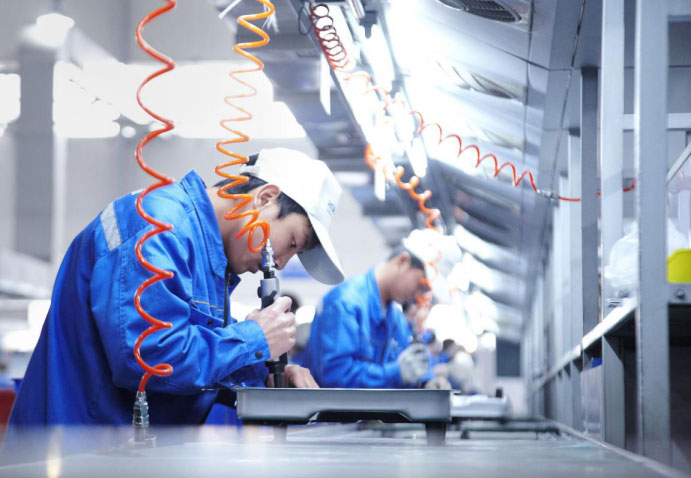 参观完展厅,新浪美女主播直奔研发部门,中途由于工厂安全网络的管制信号中断,直播画卡顿黑屏,可见Ag亚洲集团工厂对专利的保护的严格性。走过研发部门新浪美女主播又来到二楼车间参观油烟机的制作流程,现场虽然机械设备轰鸣,但Ag亚洲集团工人始终保持一颗安静的心,专注手中的产品,从组装到机械化包装完成只需60分钟。